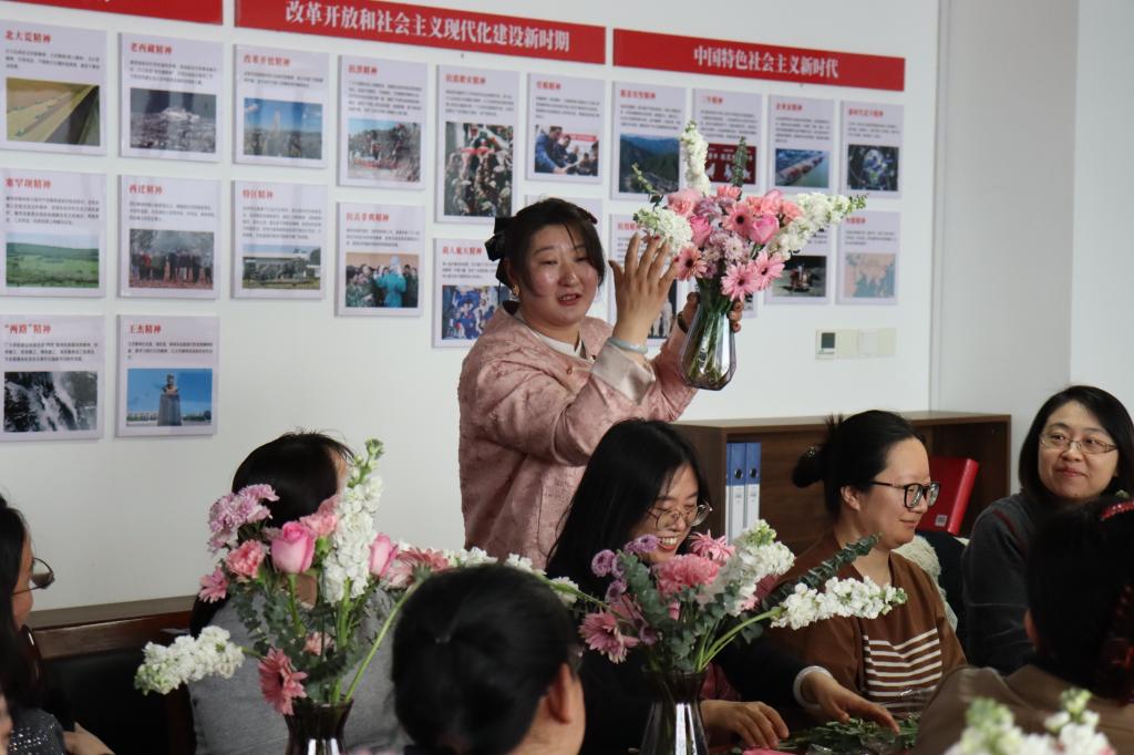 活动现场,专业花艺师现场讲解了插花的基本技巧与美学原则,并示范了花材处理、造型搭配等步骤。在花艺师的指导下,女教职工们纷纷动手实践。大家专注构思、精心调整,将原本零散的花材逐步塑造成错落有致、清新雅致的花艺作品。插花不仅是技艺的学习,更是一场与美的对话。活动结束后,女教职工们纷纷与作品合影留念,并表示要将这份“春日芬芳”带回办公室,为工作环境增添一抹亮色。