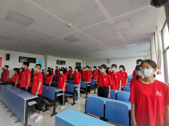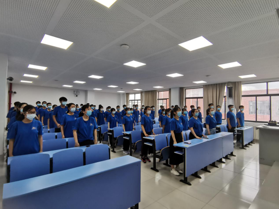 伴随着大屏幕中庄严嘹亮的国歌响起,学院师生们肃穆起立