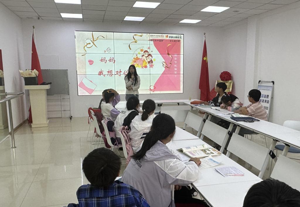 数学与应用数学2023级1班团支部的志愿者们走进银屏山路社区,带领小学生们用自己的方式表达对母亲深深的爱。活动现场,志愿者生动地介绍和讲解了母亲节的起源和涵义,同时引导小学生们分享关于母亲的故事,在贺卡上写下对母亲的感恩与祝福,并将写好的贺卡与鲜花一起送给母亲。