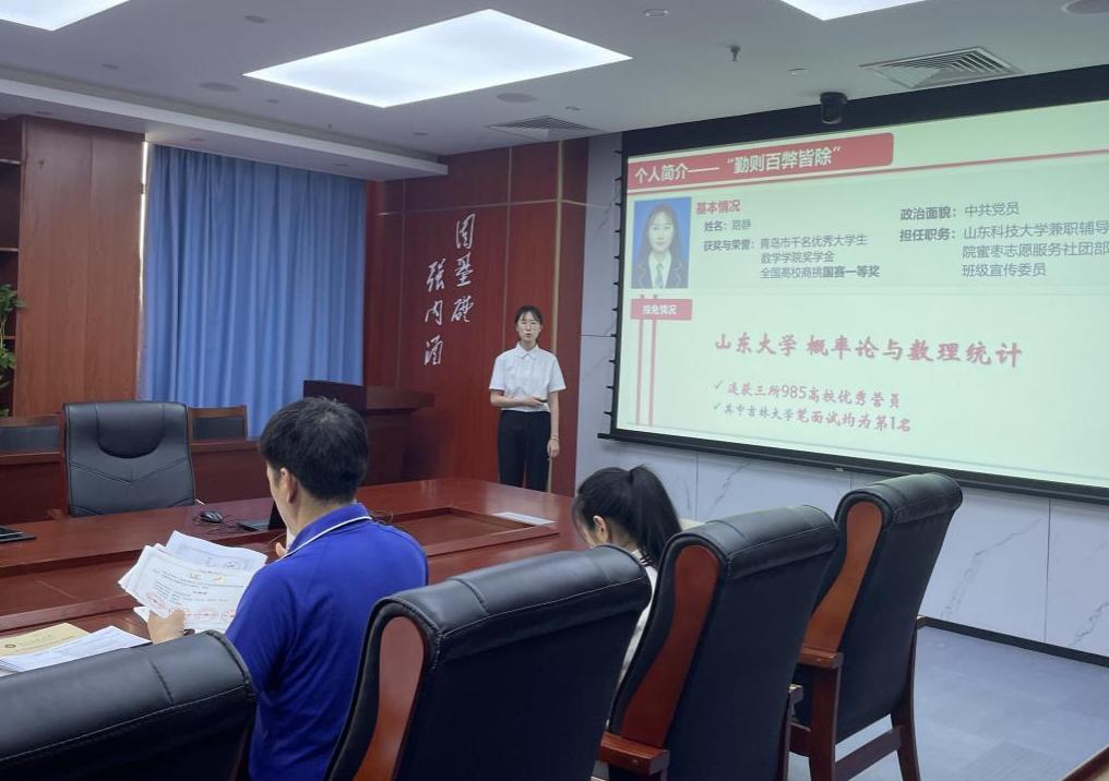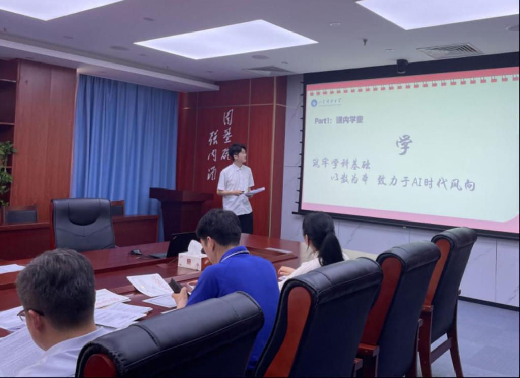 经过前期个人申请、学院初审等环节,共有7名学生作为候选人进入现场答辩环节。答辩会上,同学们依次上台,通过PPT的形式展示个人学习成绩、学生工作、荣誉奖项、科研创新及社会实践等方面的成绩。评委老师们结合同学们答辩内容做了精彩点评和提问,鼓励他们要在今后的学习工作中精益求精、不断进步。